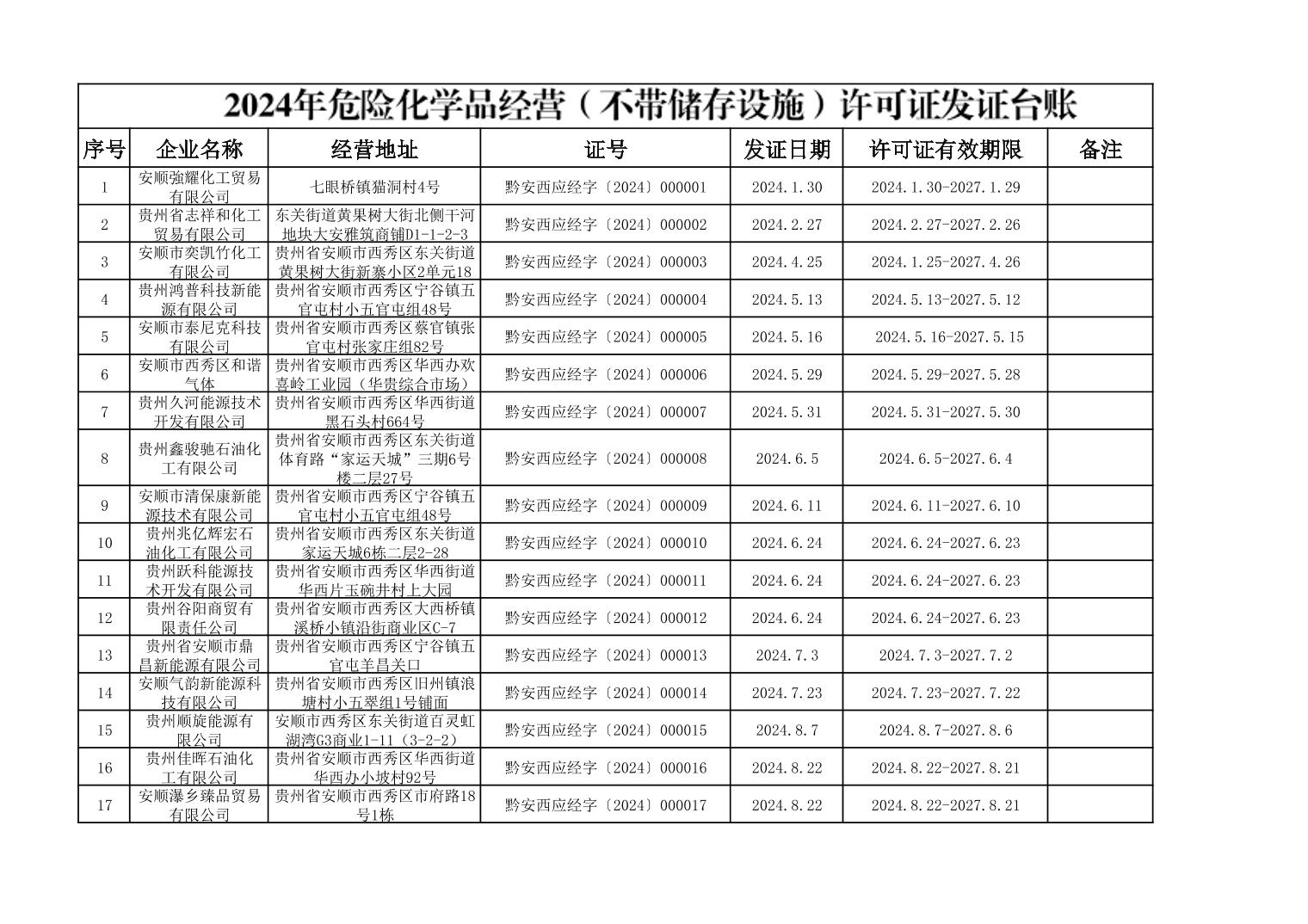 2024年危险化学品经营许可证发证台账(不带储存设施)