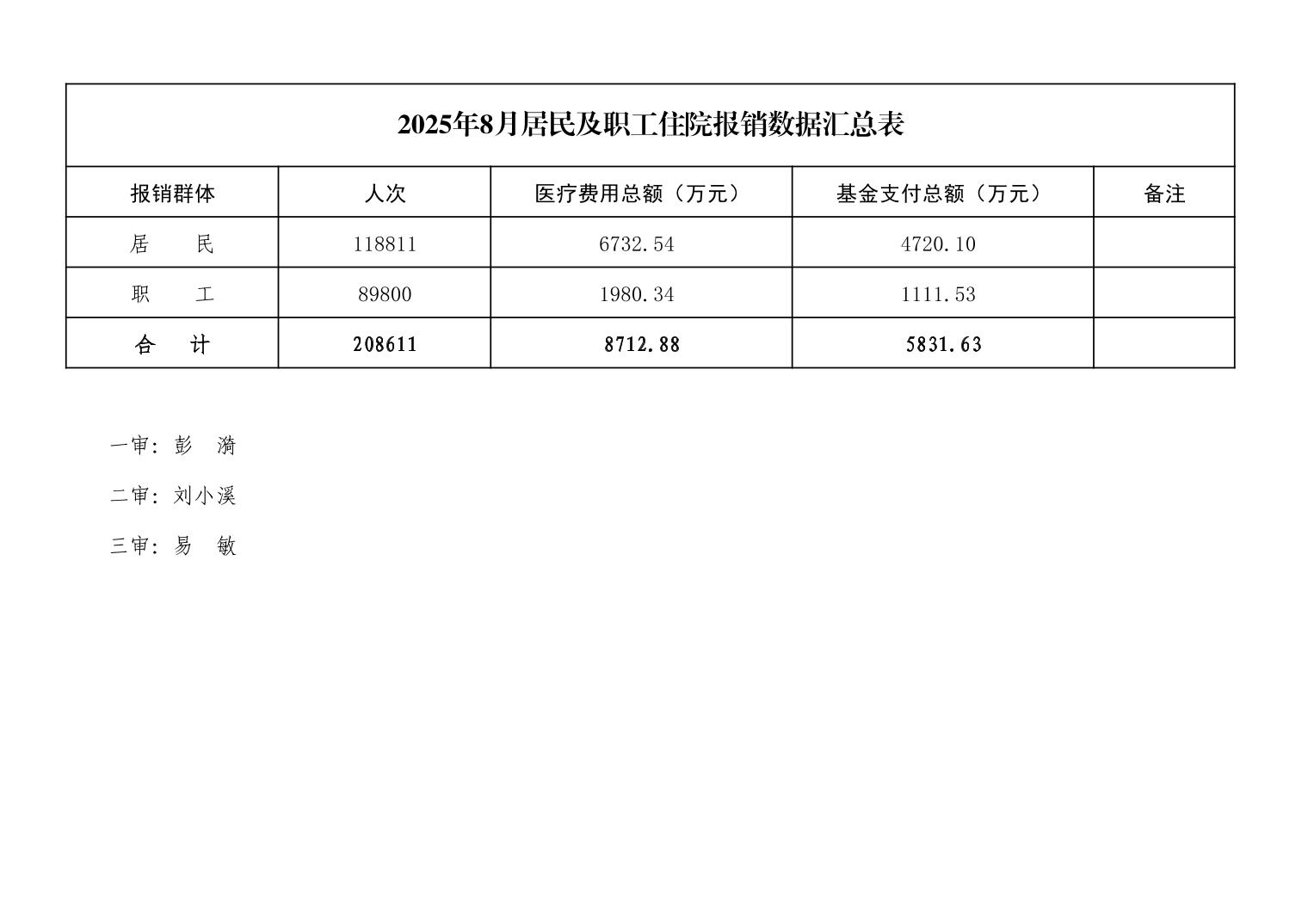 西秀区医疗保障局2025年8月居民及职工住院报销数据汇总表